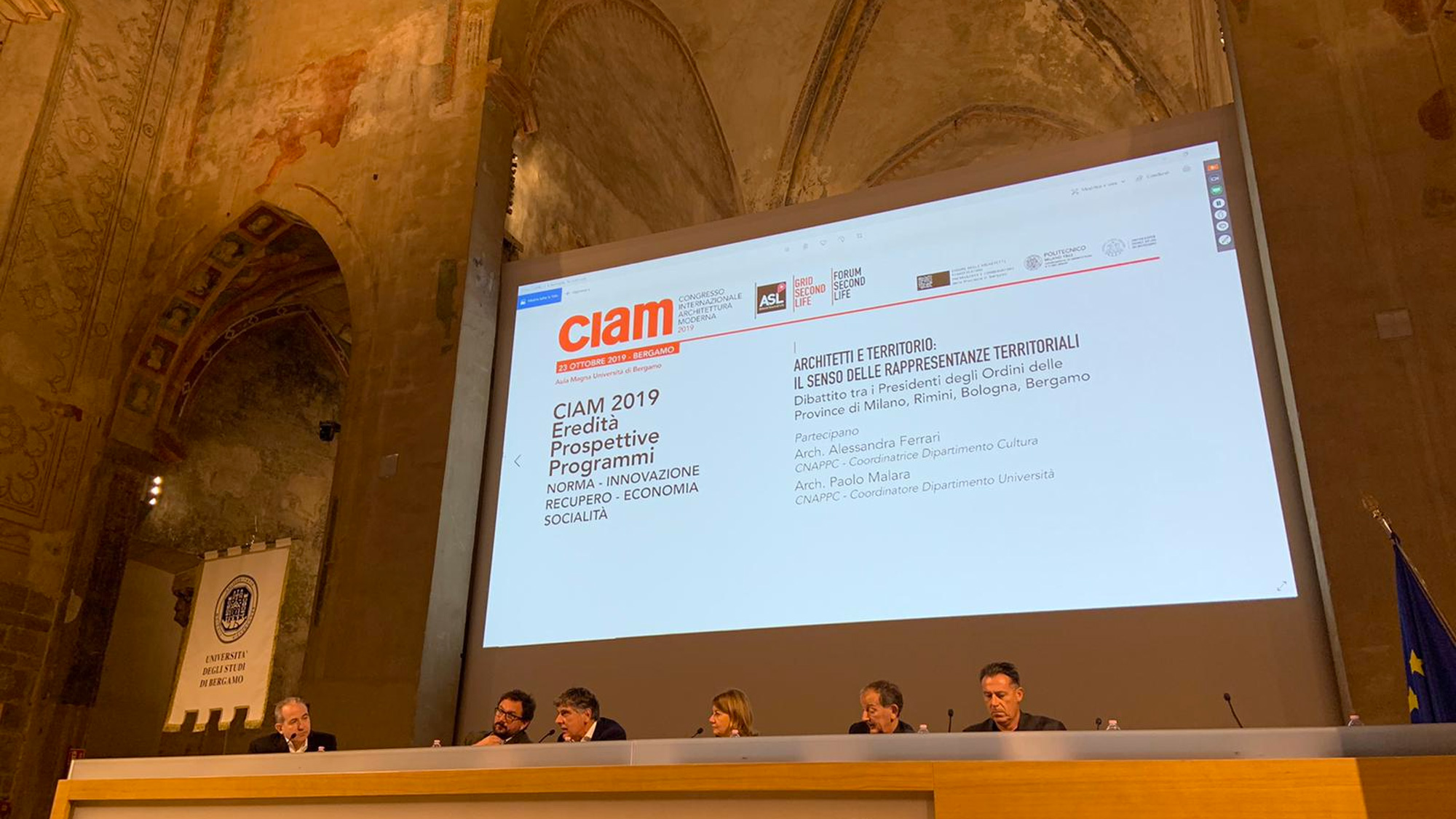 Gianpaolo Gritti (Presidente Ordine Architetti Bergamo), Paolo Mazzoleni (Presidente Ordine Architetti Milano), Paolo Malara (Consiglio Nazionale Architetti), Alessandra Ferrari (Consiglio Nazionale Architetti), Giorgio Giannelli (Presidente Ordine Architetti Bologna), Roberto Ricci (Presidente Ordine Architetti Rimini).